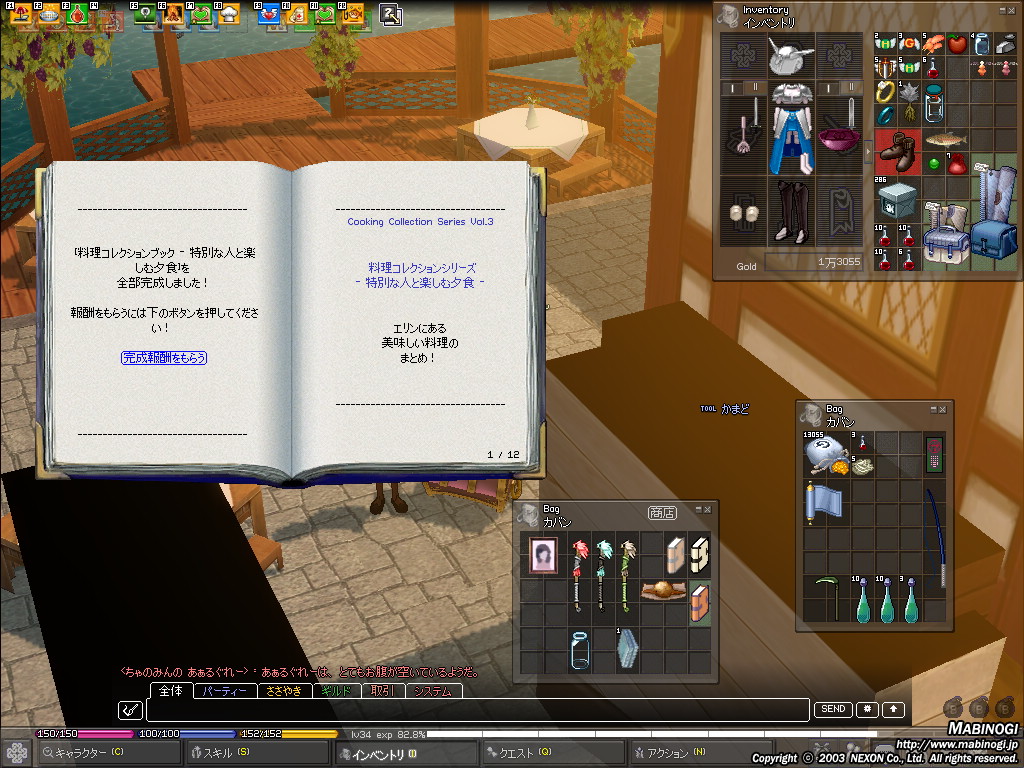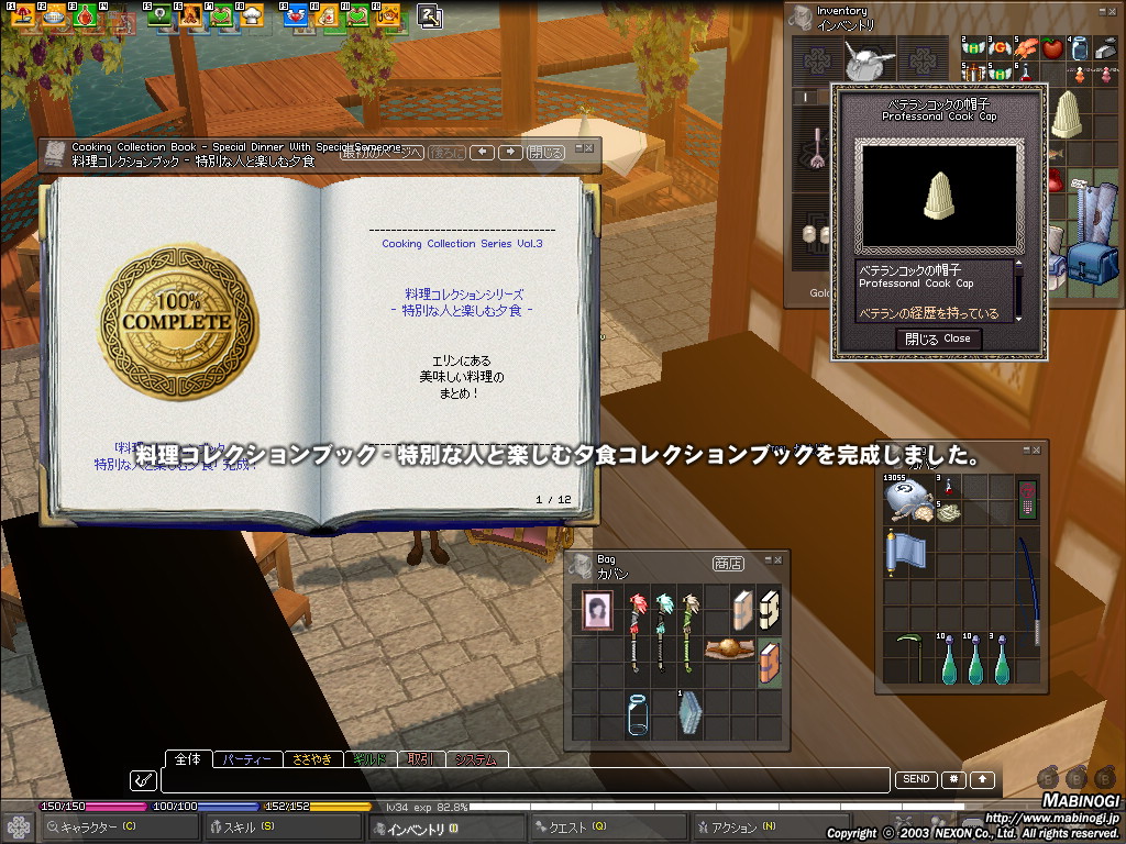 先日やったイベントのときにかぶってた帽子は、ベテランコックの帽子。これはコレクションブックを完成させるともらえるものでした。