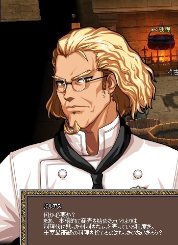 このお人は、タラのお城の調理場にいる料理人「グルアス」さんです。